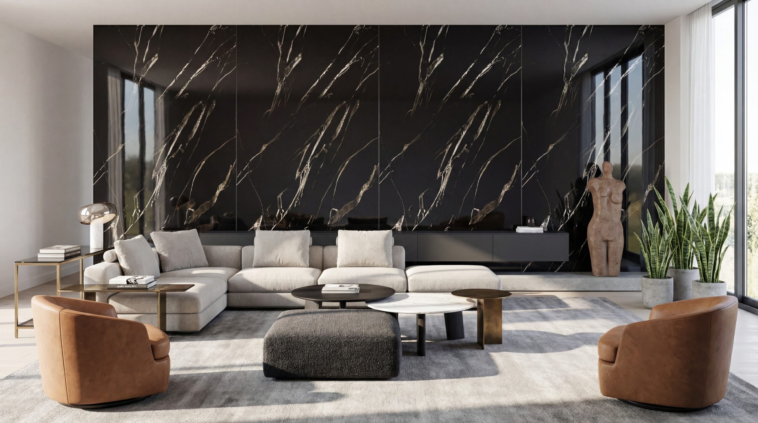 - Panel marmurowy PCV Nero Marquina Porto idealnie nadaje się na ściany dekoracyjne w salonach.