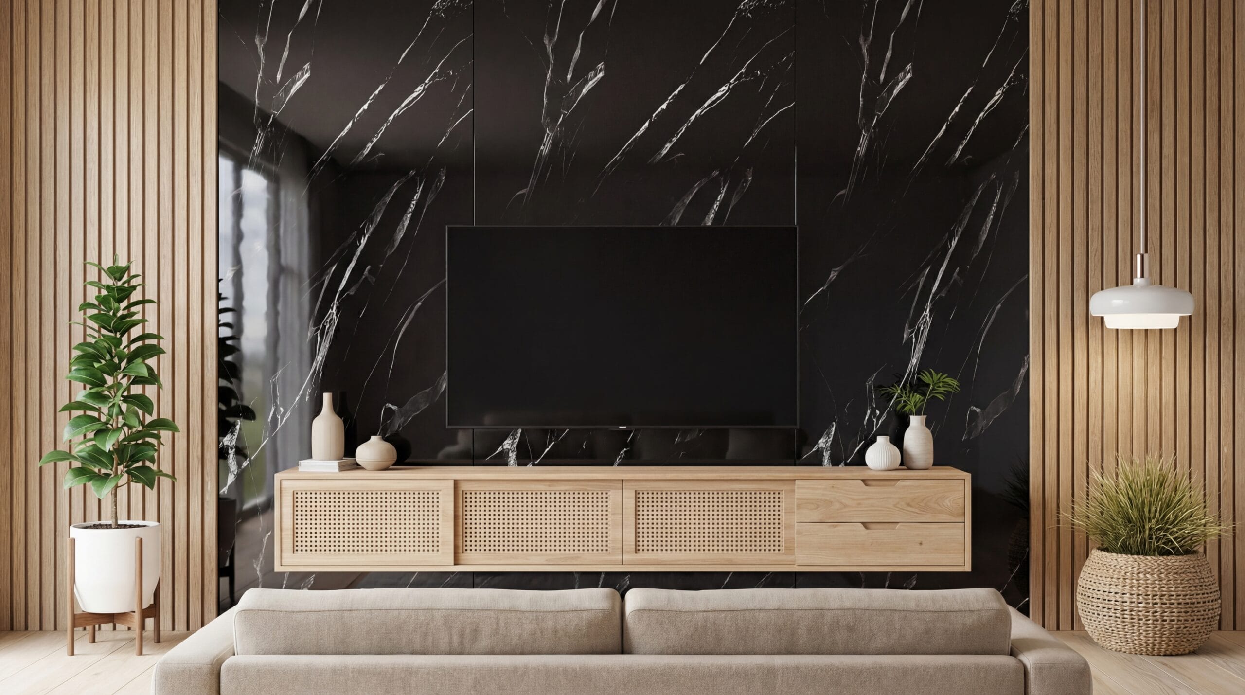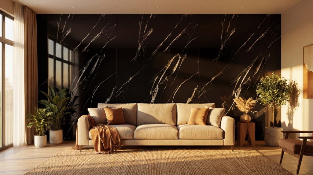 Zastosowanie w aranżacji wnętrz – panel ścienny PCV Nero Marquina